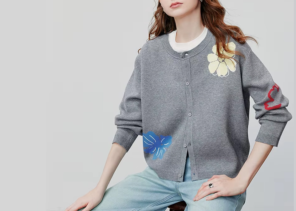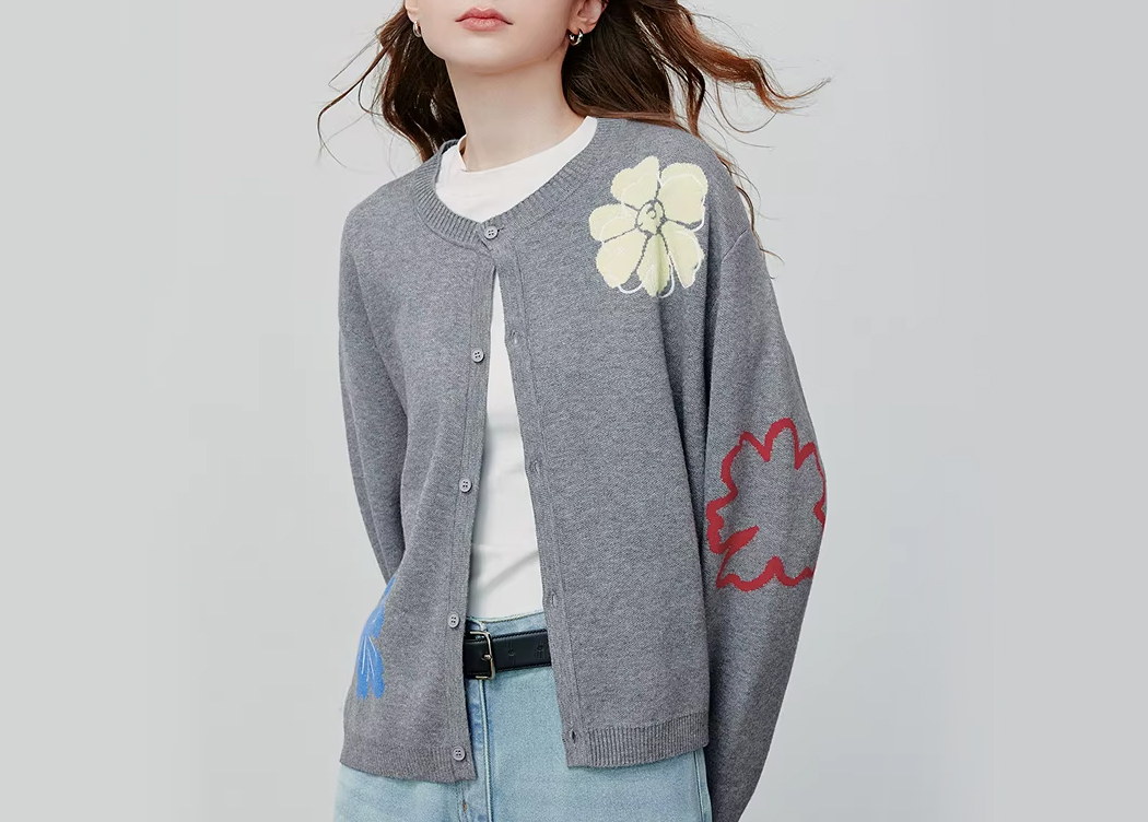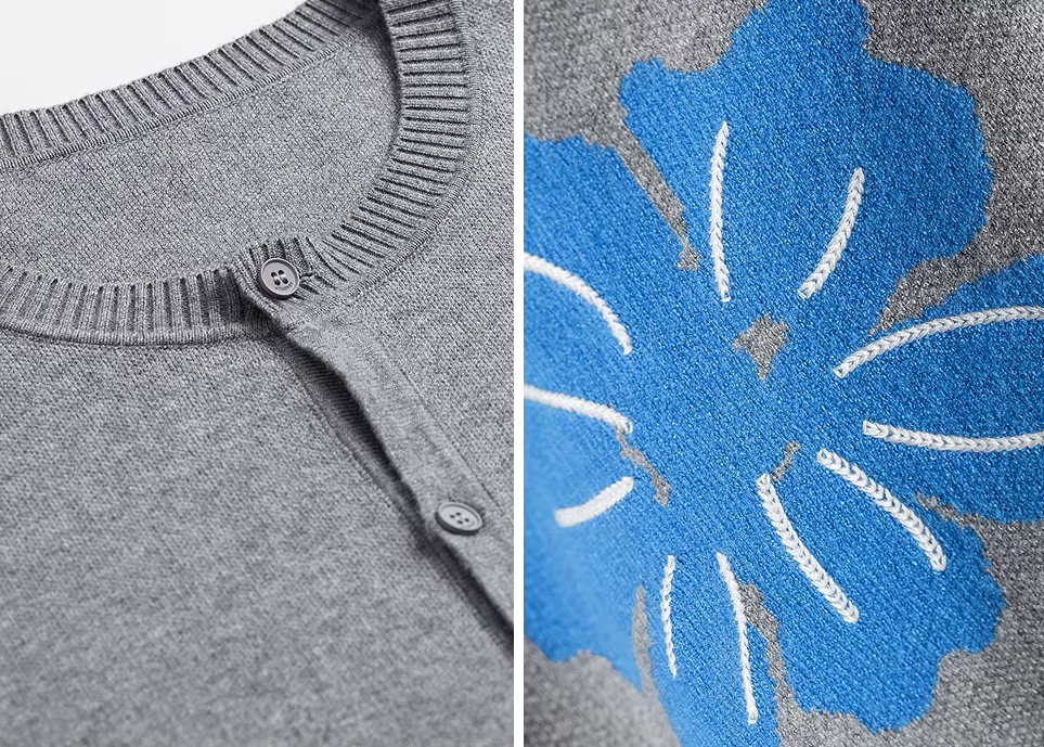סריג נעים ורך עם כפתורים ופרחים רקומים