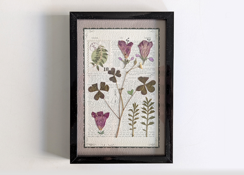 סדרת תמונות "Bring Nature Home" העושה שימוש בצמחים מיובשים (אמיתיים) בשילוב איורים ובולים. ברקע עמוד טקסט המתכתב עם דפי ספרים ישנים ביניהם התבצע תהליך ייבוש הצמחים. ניתן להעמיד על משטח או לתלות.